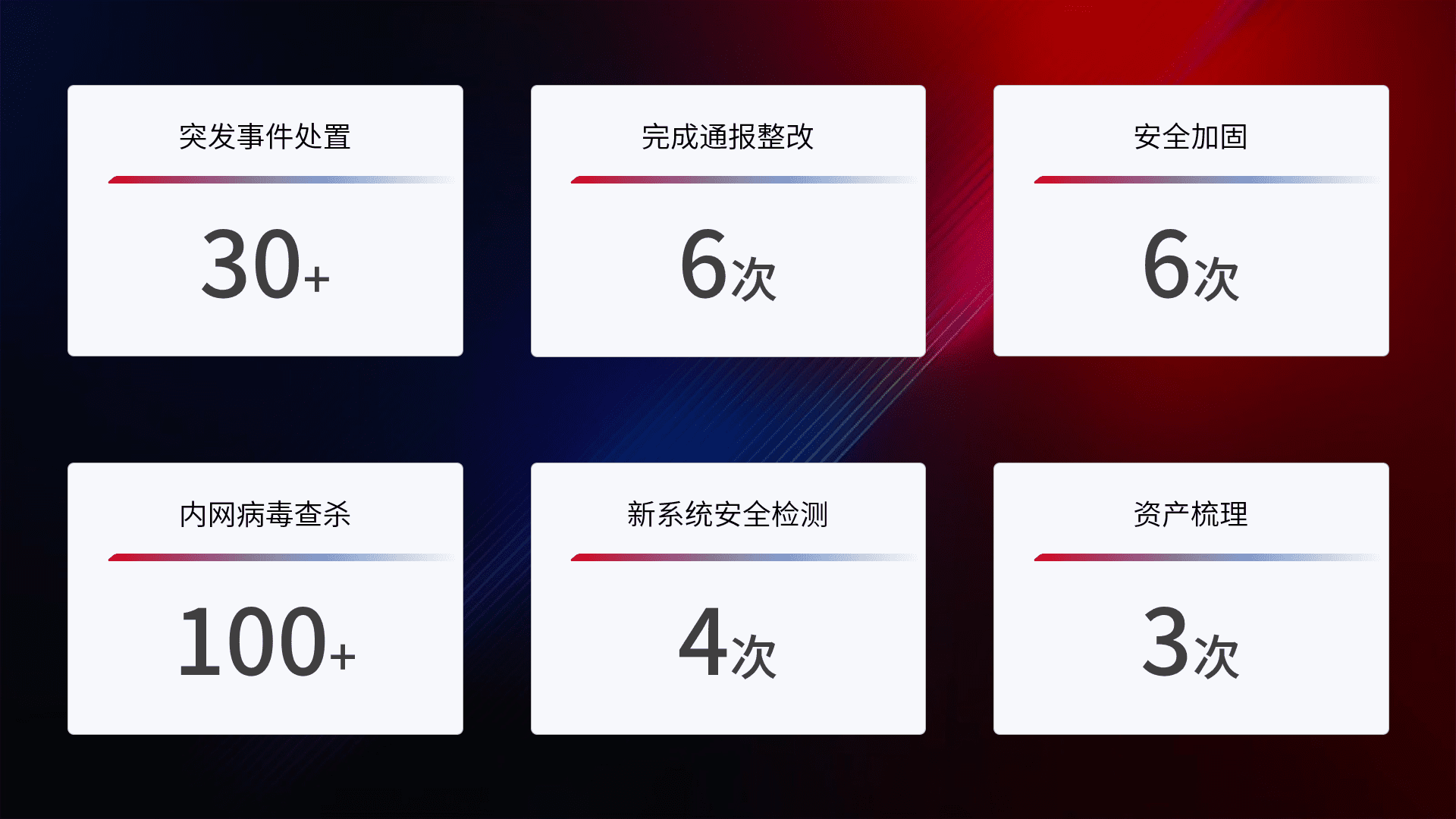 网络安全加固与风险管理:通过技术加固手段,,,如加强区域隔离,,缩减攻击内网横向移动的范围;优化现有网络安全管理制度,,,降低网络威胁暴露面,,减少被黑客攻击的可能性。。